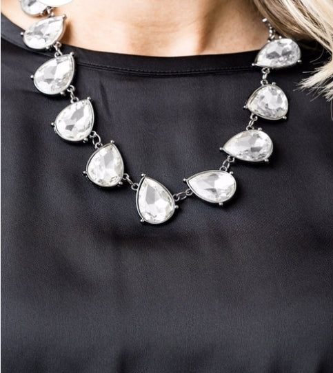 Featuring sleek gunmetal frames, dramatically oversized white teardrop gems link below the collar in an blinding, statement-making fashion. Features an adjustable clasp closure.